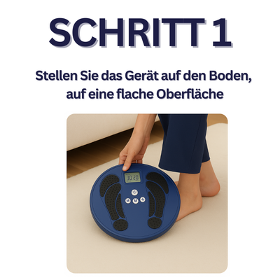 Entwickelt für Einfachheit und Effektivität: keine Installation, keine Gurte, keine Einarbeitung nötig. Stellen Sie einfach Ihre Füße auf, wählen Sie die Intensität mit der Fernbedienung – und entspannen Sie sich.