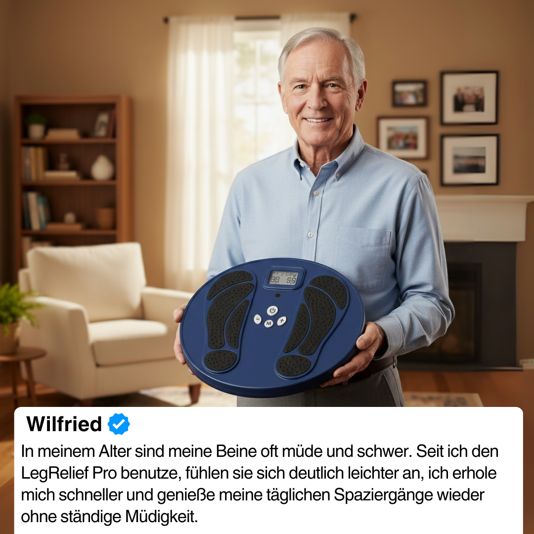 LegRelief Pro™ kann die Durchblutung fördern und das Wohlbefinden bei Menschen mit Diabetes oder Krampfadern unterstützen. Es ersetzt jedoch keine medizinische Behandlung. Sprechen Sie immer mit Ihrem Arzt, wenn Sie Bedenken haben.