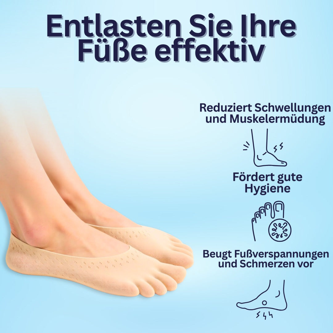 Unsere Socken sind speziell dafür entwickelt, Ihnen ein optimales Tragegefühl zu bieten und gleichzeitig Schmerzen sowie Fehlstellungen der Füße vorzubeugen.Mit ihrem eleganten Design und der hochwertigen Verarbeitung sind unsere Socken auch eine stilvolle Ergänzung für Ihre Sommergarderobe.